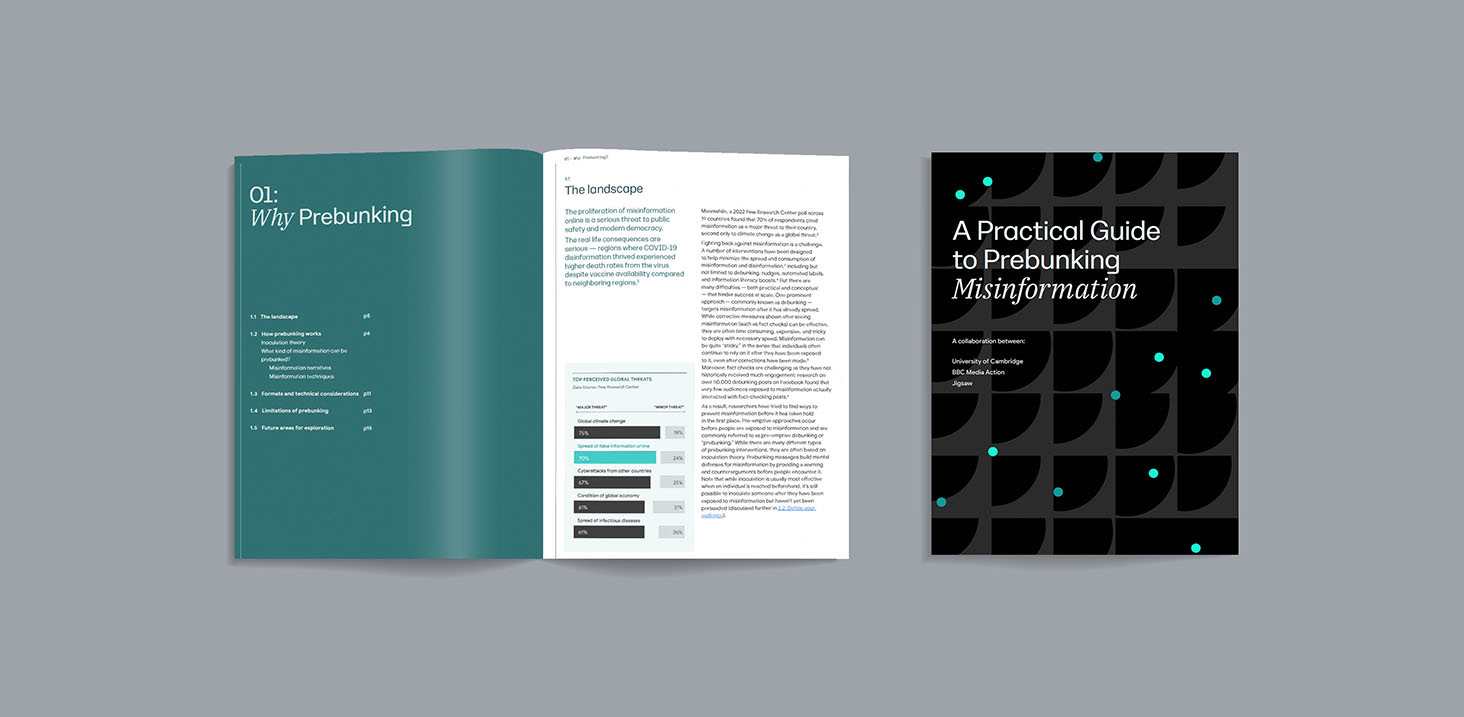 This work is a collaborative effort between the University of Cambridge, Jigsaw (Google) and BBC Media Action. The University of Cambridge’s Social Decision-Making Lab has been at the forefront of developing prebunking approaches, based on inoculation theory, designed to build people’s resilience to mis- and disinformation.